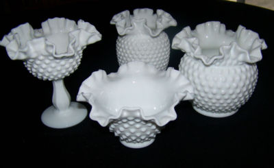 Title (ebay affiliate link): Vintage Fenton White Milk Glass Hobnail - Ruffled Edge -Lot of 4