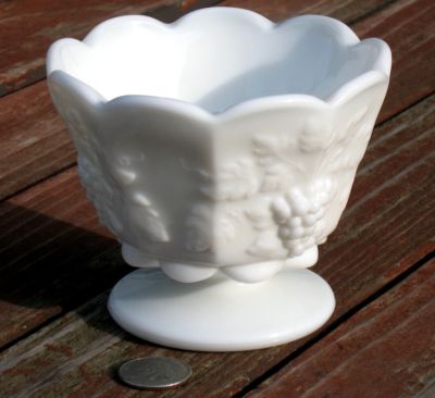 Title (ebay affiliate link): vintage WESTMORELAND PANELED GRAPE footed candy dish WHITE MILK GLASS