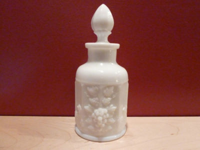 Title (ebay affiliate link): Westmoreland Paneled Milk Glass Perfume Bottle with Grape pattern