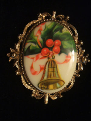 Old Milk Glass Cameo Christmas Pin