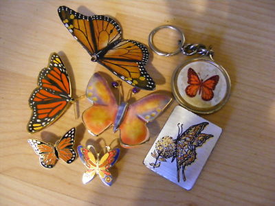 Vintage BUTTERFLY Pin Brooch Key Chain LOT