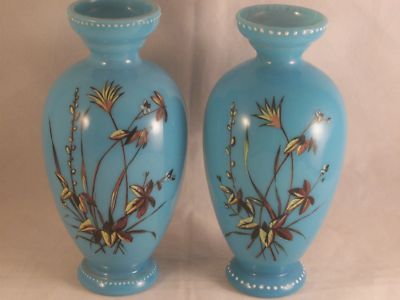 NICE PAIR OF OPAQUE BLUE BOHEMIAN VASE