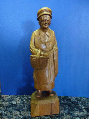 Title (ebay affiliate link): Signed Wood Carving of an Old Woman w/ a Basket by P.E. Caron from Canada