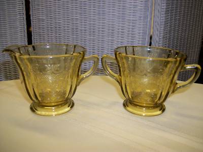 FEDERAL GLASS MADRID AMBER CREAMER SUGAR BOWLS