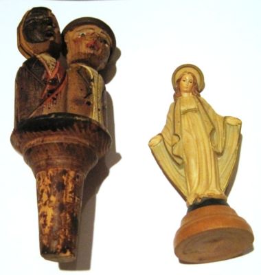 ANTIQUE ANRI MECHANICAL DOUBLE FIGURAL BOTTLE STOPPER & VIRGIN MARY STATUE