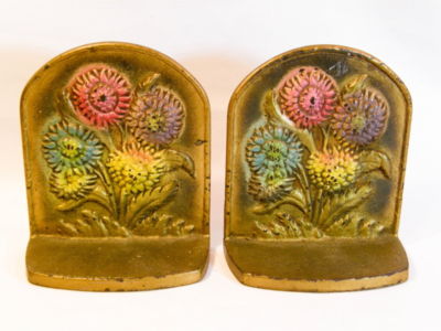 VINTAGE 1900 IRON FLOWER BOOKENDS