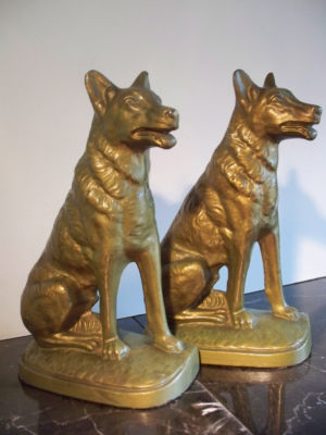 Title (ebay affiliate link): BEAUTIFUL ART DECO GERMAN SHEPHERD DOG NUART CREATIONS CAST METAL BOOKENDS