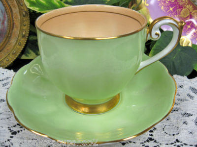 QUEEN ANNE TEA CUP AND SAUCER PEACH & LIME TEACUP GREAT PATTERN
