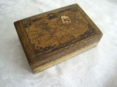 Title (ebay affiliate link): Vintage Florentine Italy Tole Lithograph Wooden Box Map of the World