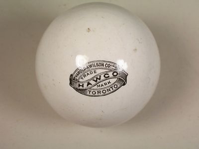 Title (ebay affiliate link): Antique Victorian Harold A. Wilson Co. Marked Earthenware Carpet Ball Bowls Game