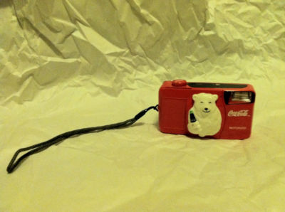 Title (ebay affiliate link): 1999 COCA COLA MOTORIZED 35MM CAMERA with POLAR-BEAR lens cover