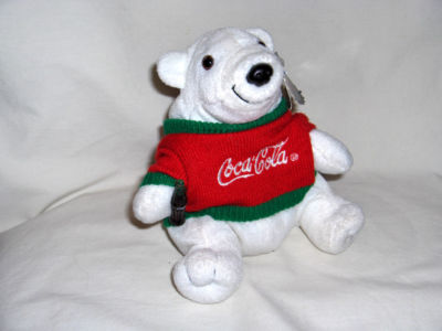 Title (ebay affiliate link): COCA-COLA POLAR BEAR BEAN BAG PLUSH W/ SWEATER, BOTTLE