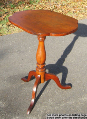 Title (ebay affiliate link): 18th Century American Cherry Tilt Top Table Great patina. Tripod base.