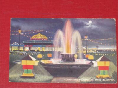Title (ebay affiliate link): Vintage Card, Illuminated Fountain and Baths Blackpool, Early 1900's.
