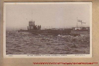 Title (ebay affiliate link): WW1 SUBMARINE E 4 leaving PORTSMOUTH 1914 -18 RP Postcard