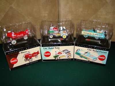 Title (ebay affiliate link): 3 1997 COCA COLA MINIATURE PEDAL CARS 3"-4"