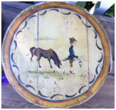 LARGE BENTWOOD PANTRY BOX W. COLONIAL MAN & HORSE A LA PETER OMPIR