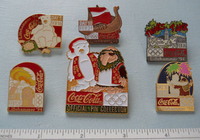 Title (ebay affiliate link): 5 Lillehammer 1994 Olympics Coca Cola Pin Of The Day Pins + 1 Official Collector