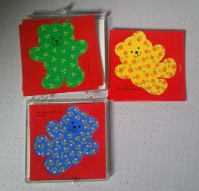 Title (ebay affiliate link): 12 RARE VINTAGE 80'S 1985 HALLMARK CALICO TEDDY BEAR SQUARE STICKERS IN CASE