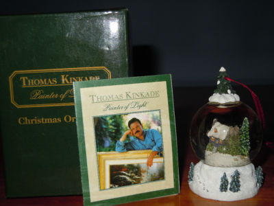 Title (ebay affiliate link): ""STONEHEARTH HUTCH" MINI-WATER GLOBE ORNAMENT THOMAS KINKADE CHRISTMAS ORNAMENT