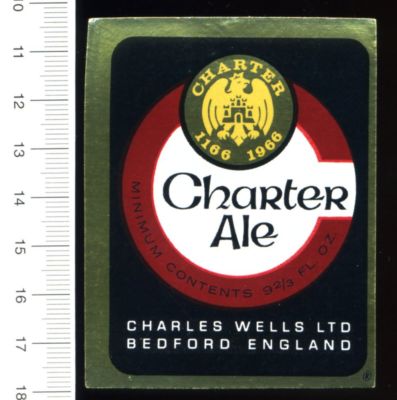 English beer label - CHARLES WELLS LTD, BEDFORD - CHARTER ALE 1166-1966