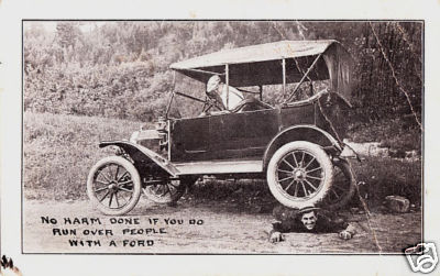 EARLY FORD AUTO NO HARM WHEN U RUN OVER PEOPLE POSTCARD