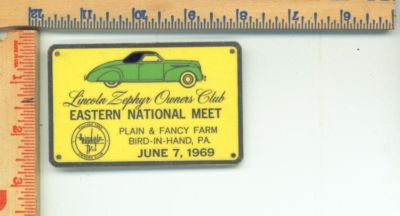 June 7,1969 lincoln Zephyr Owners Club Eastern National PA. meet tin sign unused