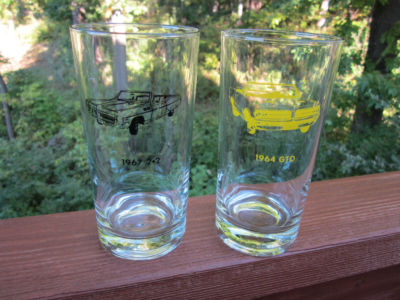 Vintage Pair of Pontiac Drinking Glasses with 1967 2+2 and 1964 GTO Designs