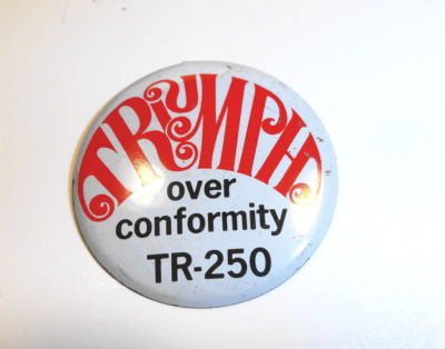 Triumph TR-250 1968 Advertising Button Pin Triumph Over Conformity