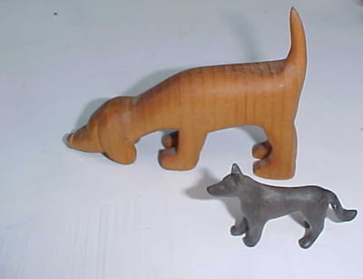 Vintage Miniature Hand Carved Wood Dogs Lot 2