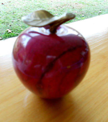 Title (ebay affiliate link): Red Marble Apple Paperweight Gold Metal Stem Leaf Collectible Fruit Teacher Gift