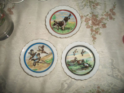 Mini 3 3/4" Ducks Dog Collector Hanging Plates Japan Vintage??? Age ???