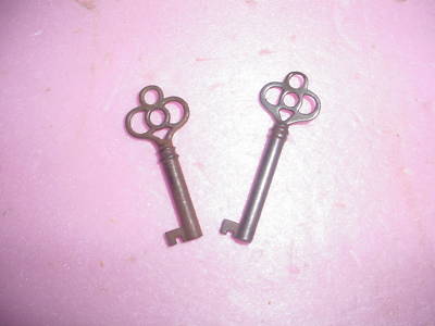 2 ~ Fancy Bow Antique Keys old Original / Furniture oak