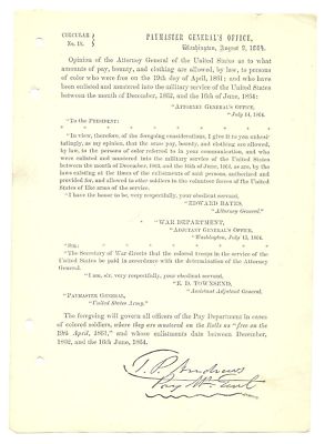 Title (ebay affiliate link): U.S. Civil War era UNION Military Circular PAYMASTER GENERAL'S OFFICE 1864