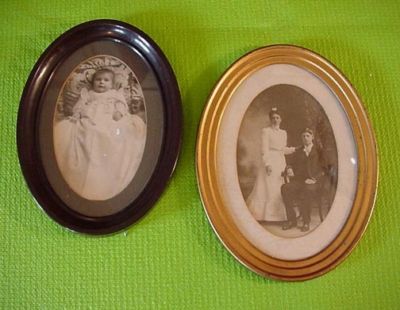 Title (ebay affiliate link): 2 small Vintage Metal Oval Picture Frames w. old photos baby & couple cool retro