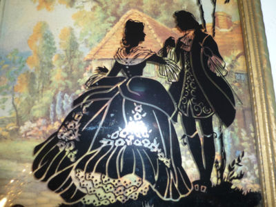 Title (ebay affiliate link): Bubble glass framed antique Victorian man lady silhouette convex cottage rustic
