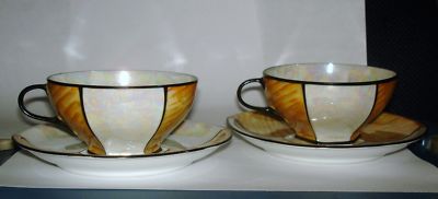 ANTIQUE PORCELAIN CZECH - 2 CUPS & SAUCERS SET - TIMELESS DESIGN