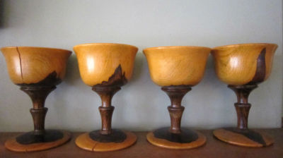 Title (ebay affiliate link): Attention Treen Collectors ~ FOUR Carved Wooden Goblets / Cups (Lignum vitae ?)