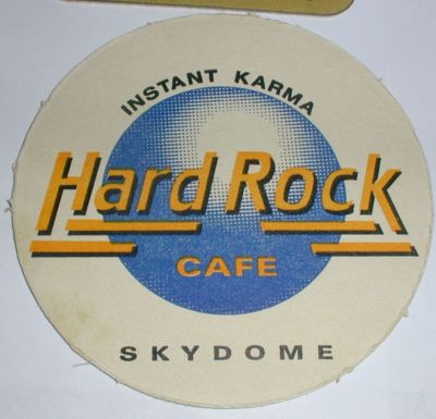 Title (ebay affiliate link): OLD CANADA BEER COASTER INSTANT KARMA HARD ROCK CAFE SKYDOME TORONTO.