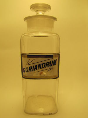 Title (ebay affiliate link): LABEL UNDER GLASS APOTHECARY PHARMACY SALT JAR - CORIANDRUM - RED & GOLD BORDER
