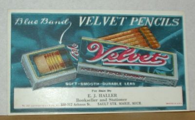Vintage Velvet PENCIL Ink Blotter Advertisement Haller MI Sault St Marie Antique