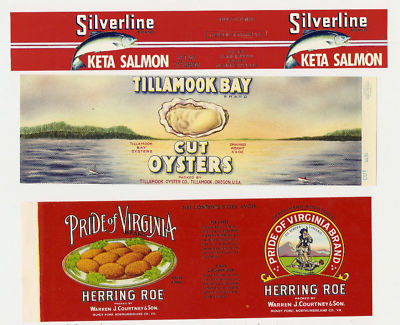 39 VINTAGE DIFFERENT FISH,TUNA,SALMON,OYSTERS LABELS