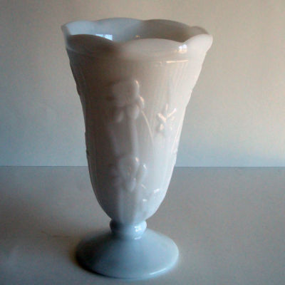 Vintage Milk Glass Vase with Flower Pattern