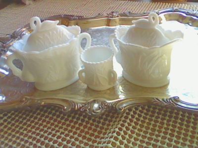 Title (ebay affiliate link): Westmoreland Milk glass - 3 pc. Set! Sugar/Creamer/Toothpick -Swans in Cattails