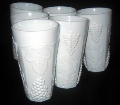 Title (ebay affiliate link): 6 Total Vintage Paneled Grape White Milk Glass Water Glasses Tumblers 6" Inch