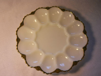 Title (ebay affiliate link): VINTAGE FIRE KING MILK GLASS DEVILED EGG SERVER PLATE - GOLD GILT - MINT