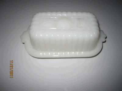 VINTAGE MINIATURE SMALL SIZE WHITE MILK GLASS BUTTER DISH