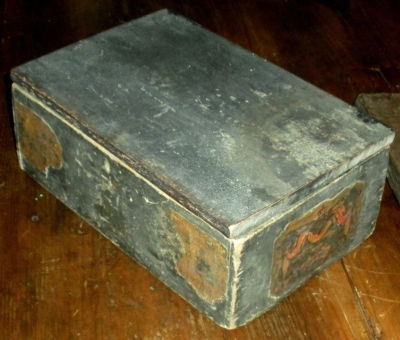 Title (ebay affiliate link): ANTIQUE C1840S PRIMITIVE BOX ORIGINAL BLUISH GREY PAINT W GREAT ADVERTISEMENTS
