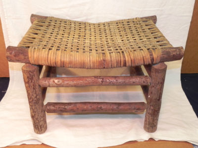 Vintage Hickory Foot Stool,Woven Seat-Bench,Primitive Wood Hand Crafted
