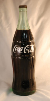 Title (ebay affiliate link): VINTAGE COCA COLA 26 OZ FULL BOTTLE GREEN GLASS 1955 ACL EMBOSSED